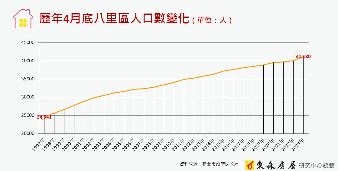 林瑞堂指出,依據新北市民政局資料顯示,八里人口數量逐年增加,截止到今年4月底,八里的人口數已經突破41,180人,而且區內還有不少設籍在其他地區、但定居在八里的外來人口,由此推估八里的實際居住人口應會超過這個數字。人口是區域發展的基石,人口的流入為八里房市提供了很強的支撐力,所以即使去年全台房市氣溫驟降,但八里的房市表現仍可圈可點,建物買賣移轉棟數甚至寫下歷年新高,顯見市場對於八里後市發展信心十足。